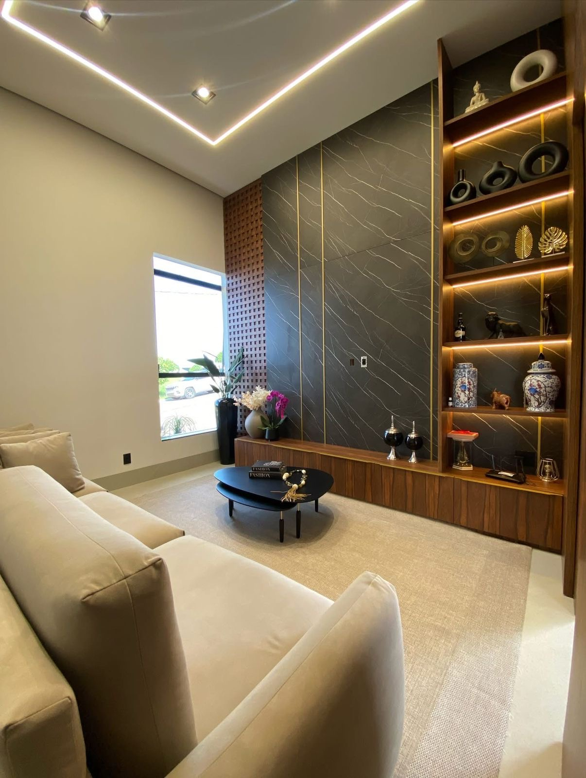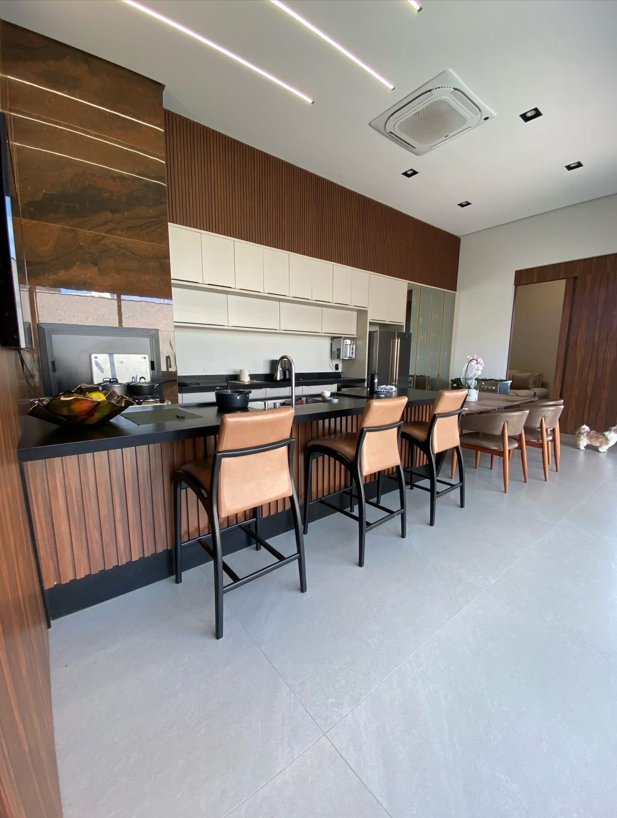 ✔️ Living integrado com área gourmet e pé-direito de 4,50m