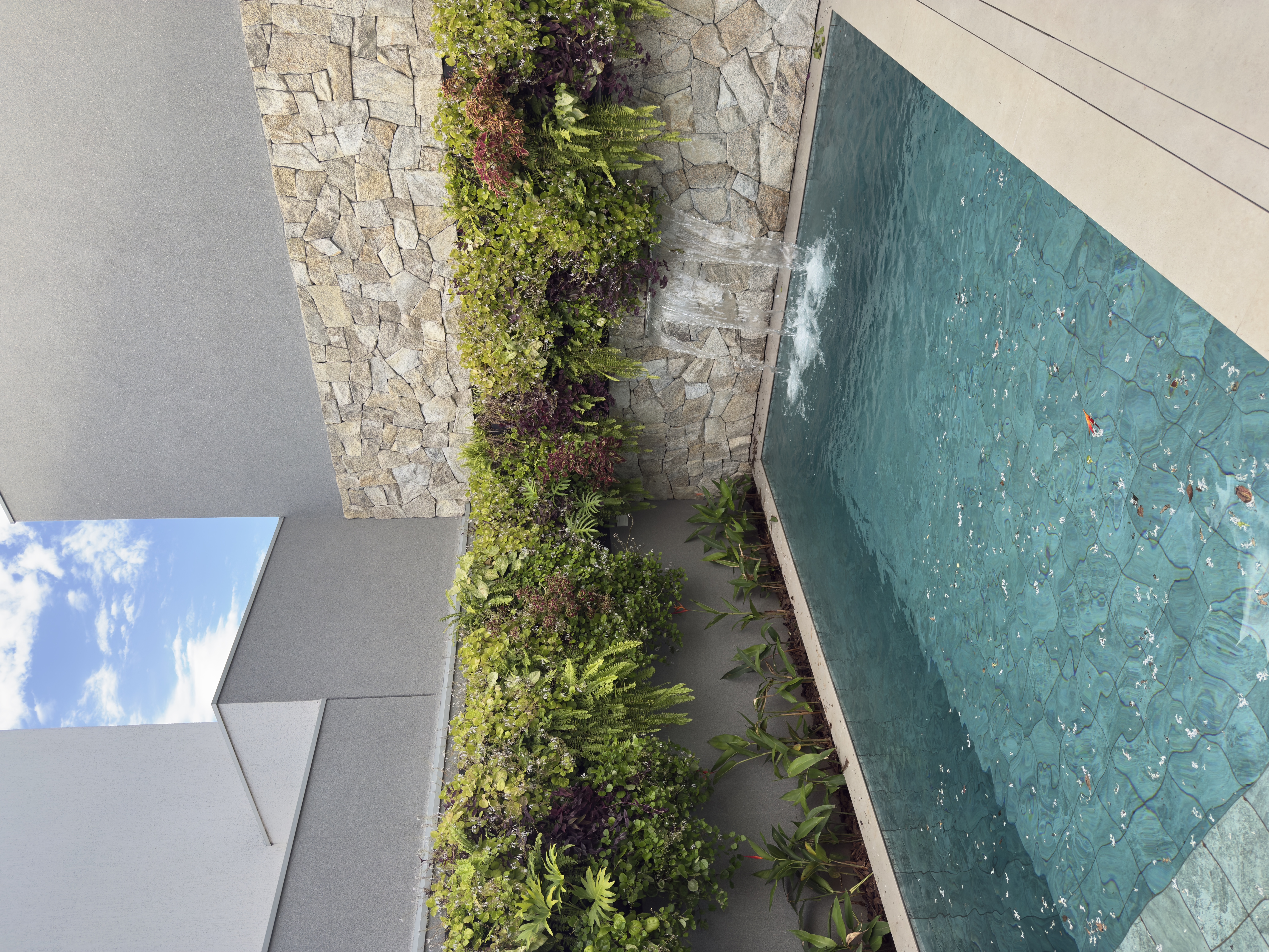 ✔️ Piscina moderna com cascata eletrônica e iluminação em LED multicolor